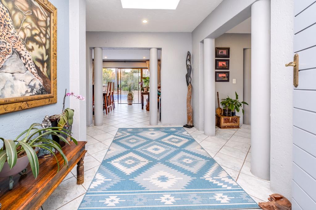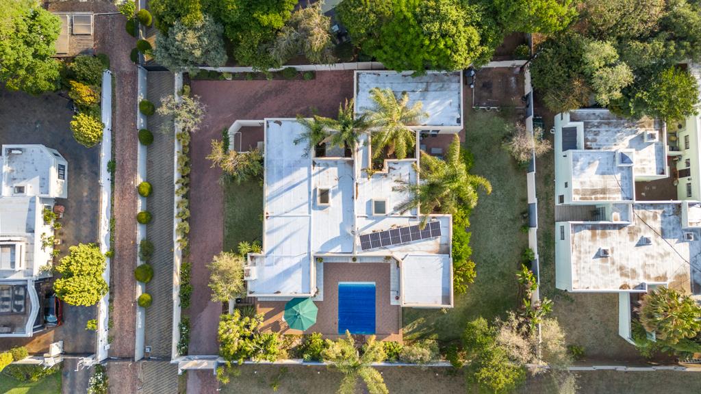 The gourmet kitchen is a chefs delight, featuring granite countertops, a pantry, and a separate scullery for added convenience. Step outside to an expansive patio complete with a built-in braai, overlooking a sparkling poolperfect for entertaining or tranquil evenings with family and friends.