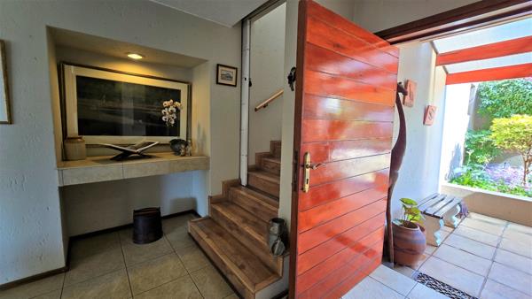 On the right side of the home, you will find the modern open-plan kitchen, truly a chefs delight. It features abundant cupboard space and high-end Caesarstone countertops, along with both a gas and electric hob, and oven, space for a double-door fridge with a separate scullery, space for three under-counter appliances, complete with a walk-in pantry, enhancing the kitchen''s functionality. The dining area is strategically placed next to the kitchen, which seamlessly flows into a second living area. The ground floor is completed with a well-appointed guest bathroom.