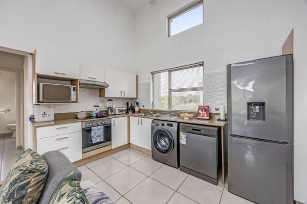 The home opens up to a stylish kitchen, complete with a Defy oven, stove, and extractor, as well as room for two under-counter appliances and a single-door fridge.