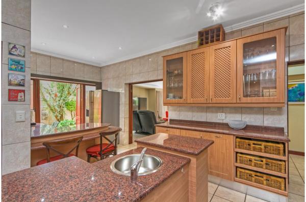 The kitchen is both stylish and functional, featuring a walk-in pantry, a scullery with space for three appliances, and direct access to a private courtyard. A study and a separate storage room offer additional convenience, along with a guest loo for visitors. The triple garage provides ample parking, while a full set of staff quarters, complete with its own kitchen and bathroom.