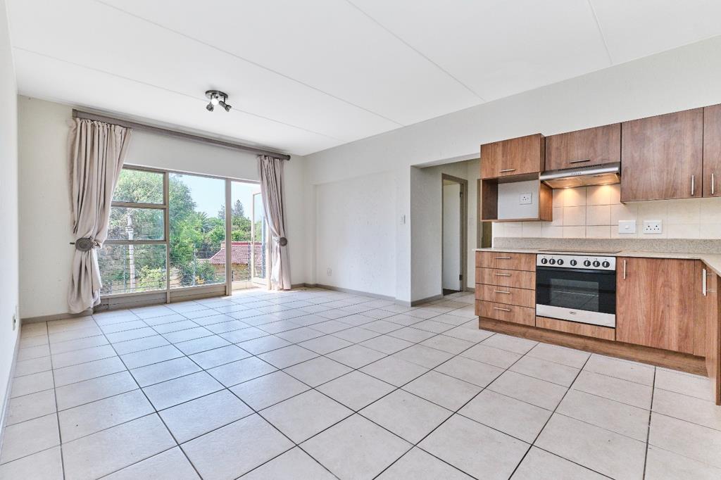 Step into the generous open-plan lounge and dining area, which flows seamlessly onto a private balcony with serene neighbourhood views. The modern kitchen features light CaesarStone countertops, a pantry cupboard, under-counter oven, hob, extractor fan, and space for a water appliance and single fridge everything you need in one stylish space. The bathroom offers a bath with a shower in it, with added convenience from a cupboard and mirror cabinet for extra storage. Both bedrooms are well-sized with carpeting and plenty of cupboard space, while the tiled living areas make for easy, low-maintenance living.