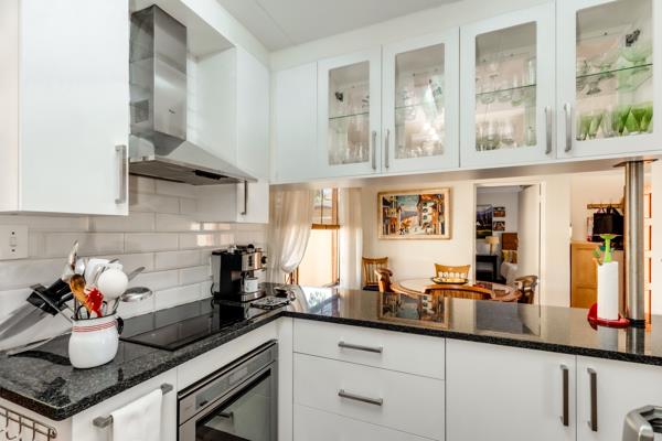 Modern kitchen fitted with quality cabinetry, sleek countertops, and space for two undercounter appliances.
