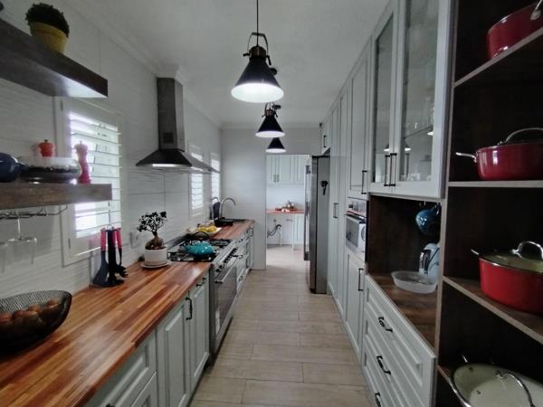 The kitchen is a chefs delight, complete with a gas stove and separate scullery. Additional features include staff accommodation, a double garage, and ample parking.