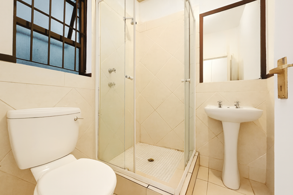 This ground-floor studio offers a functional open-plan layout with a combined lounge and bedroom area featuring built-in cupboards. The kitchen includes space for one under-counter appliance and leads to a neat bathroom with a shower. The bedroom opens onto an enclosed patio that extends to a private garden, perfect for relaxing or entertaining in comfort and privacy.