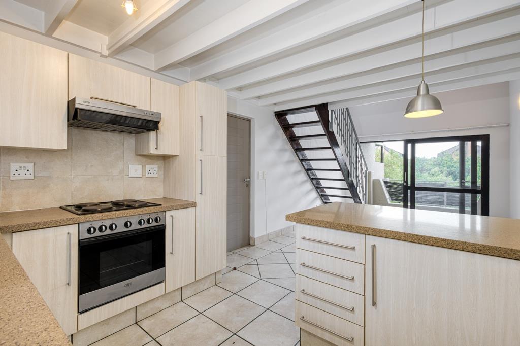 Welcome to this stylish loft apartment located in the sought-after Zaleni complex. Enter a modern, open-plan layout that seamlessly connects the kitchen and living area, creating an inviting and functional space. The kitchen offers space for one under-counter appliance as well as a fridge.