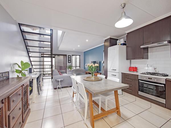 Step into a bright open-plan kitchen and living area designed for easy living and effortless entertaining. The kitchen features a gas hob, undercounter oven and space for one plumbed appliance. The living area comfortably fits both a lounge suite and dining set, and flows out onto a private balcony, your ideal spot for morning coffee or sundowners. A guest bathroom completes this level.