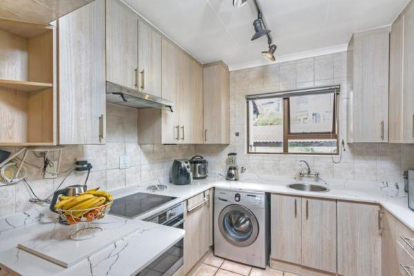 The modern open-plan kitchen is beautifully finished with sleek caesarstone countertops ,under counter space for appliances, generous storage space, an oven, hob, extractor fan and a functional nook ideal as food prep station or breakfast island. The kitchen flows into a bright lounge and dining room that leads onto a private balcony with a built- in braai , perfect for unwinding and enjoying uninterrupted sunset views over treetops. The apartment comes with a dedicated parking bay and ample visitors'' parking. This impressive home is a smart choice for first time buyers, young professionals or investors seeking a secure lock-up-and go lifestyle surrounded by nature.