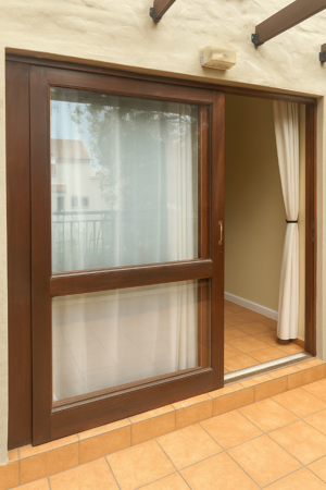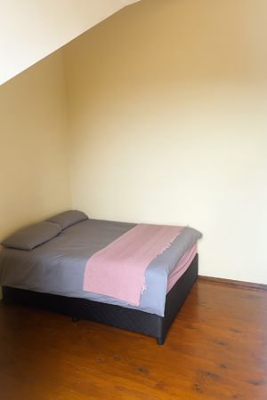 This residence offers two generously sized bedrooms, designed for comfort and tranquility. Each bedroom benefits from abundant natural light streaming through large windows, some fitted with security bars for peace of mind. The rooms feature either modern tiled flooring or warm wooden flooring, and one includes a convenient white dresser for additional storage. The functional bathroom, though featuring a dated aesthetic with terracotta-tiled floors and lower walls, includes a clean white bathtub, toilet, and pedestal sink, with a high-set window for natural light and ventilation.