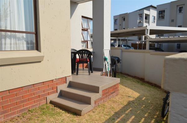 There is a patio and small garden for small animals or children. The complex is well located in a very quiet area of Sandton with lots of space to walk around. There is a large swimming pool and braai area. This apartment has one undercover parking and one open parking and plenty of visitors parking. It is located close to all major amenities including schools, transport, hospitals and shopping centres. The security is excellent. Viewing is available by appointment.