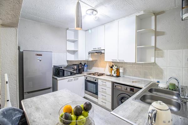 This Ground floor apartment offers a comfortable 1.5 bedrooms. Main bedroom with amlpe built in cupboard space, Second Kiddies bedroom or study. The full bathroom is well-appointed bath and shower