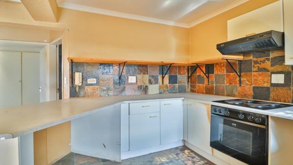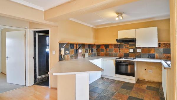 - Kitchen with breakfast counter, hob, oven, extractor and space for 1 wet appliance and a single door fridge
