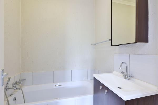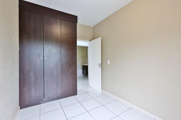 The bedrooms offer serene sanctuaries, with the first bedroom having built-in cupboards with wooden finishes, adding warmth and character to the space. The master bedroom treats you to the luxury of an ensuite bathroom, ensuring both privacy and convenience. Bathroom one features a bath tub with shower head and a glass door fitting, while the en-suite bathroom features a gorgeous shower, epitomizing modern sophistication.