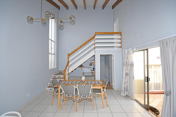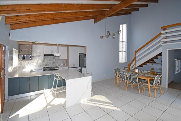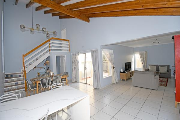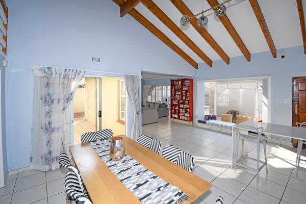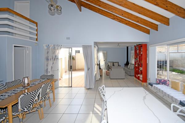 The open-plan lounge and dining room provide ample space for relaxation and entertaining, with plenty of natural light, plus sliding doors opening onto the patio.