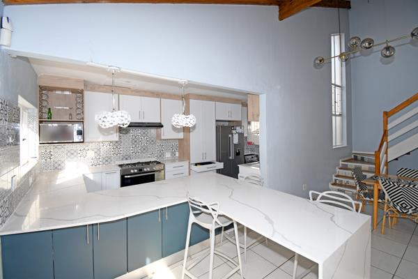 The gorgeous renovated kitchen offers quartz tops, a gas range, space for two wet appliances and a double door fridge. The soft touch cabinetry and large breakfast bar area will delight you.