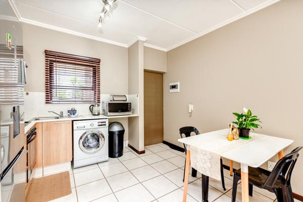 The open-plan living area seamlessly combines the dining and lounge space which opens out onto a lovely balcony, perfect for enjoying the fresh air or outdoor relaxation