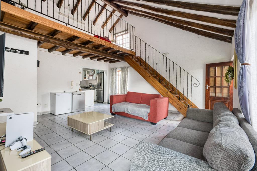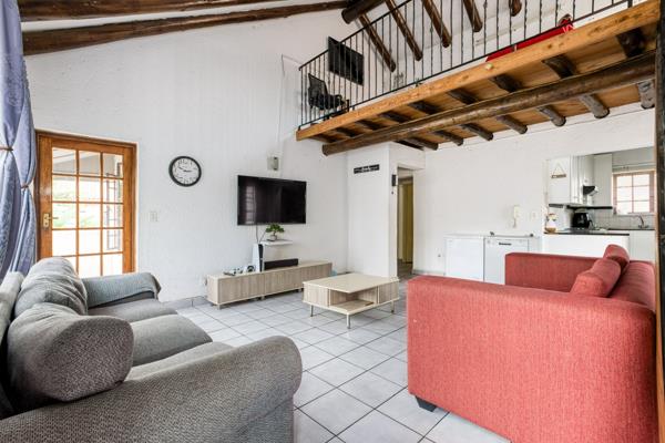 A charming wooden staircase leads to a versatile loft space that can be used as a home office, lounge or an entertainment space.