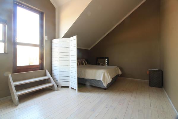 Ascend to the upper level to discover a generous loft area with built-in cupboards, offering versatile options as a third bedroom, additional lounge, or home office. This loft opens onto a spacious patio with stunning views of the Sandton suburbs, making it an ideal venue for entertaining during warm summer evenings.