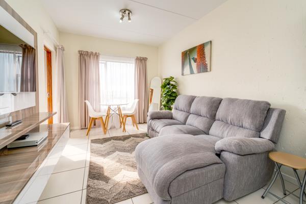 Enjoy an open-plan living space that flows effortlessly onto a private balconyperfect for morning coffees or sundowners. The kitchen is sleek with space for 2 electrical appliances, the bedrooms are cozy, and the bathroom? Spotless!