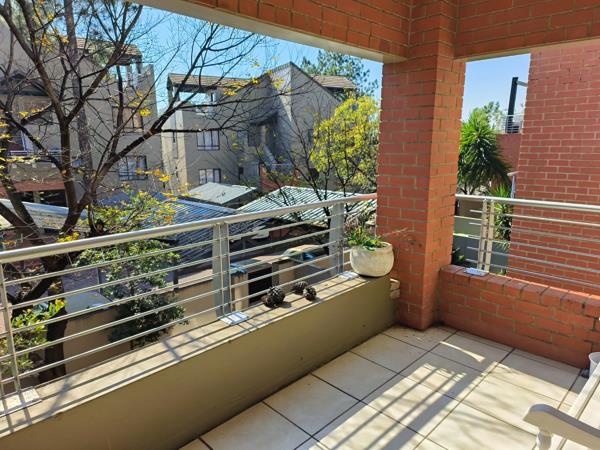 One spacious bedroom fitted with ample built-in cupboards. The modern bathroom offers a shower. An open-plan kitchen fitted with dark countertops complimented by the natural wood-finish cupboards accommodates for 1 appliance and a single door fridge. The spacious living area opens onto a covered balcony with treetop views. 1 designated carport and ample visitors parking.