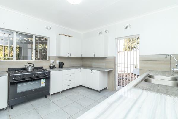 Stylishly Refurbished Kitchen Featuring a 90cm gaselectric oven combo, ample cupboards, and space for appliances every home chefs dream!