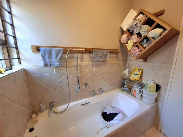 The kitchen overlooks the spacious living room/dining room and steps out to a tiled patio and huge garden. Pet friendly with body corporate consent.