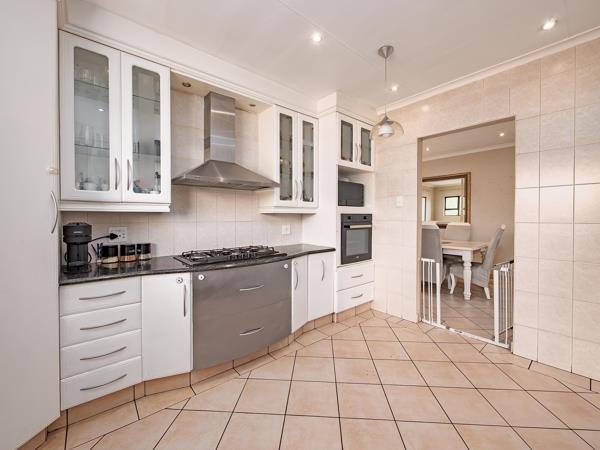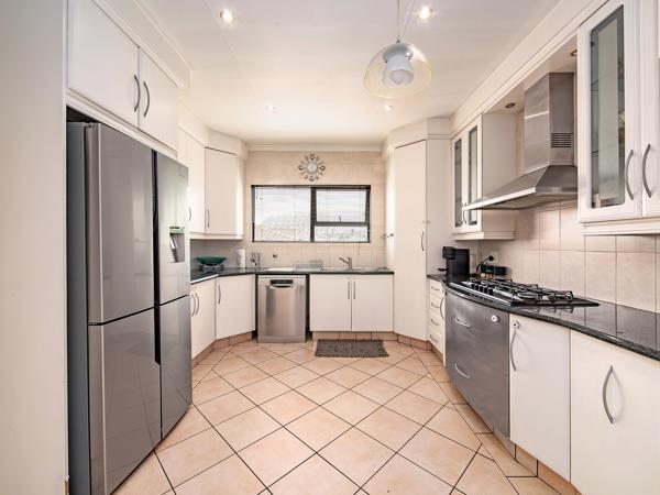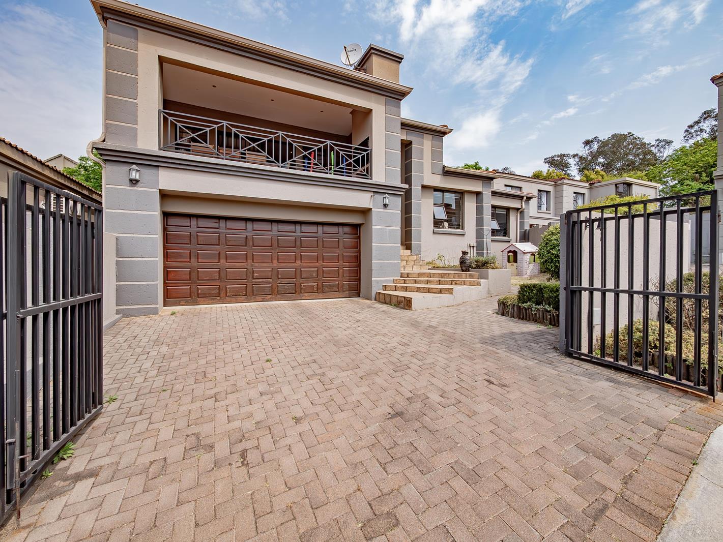 This beautifully designed home offers comfort, space, and convenience in one of the most sought-after estates in the area. Spread across two levels, it is ideal for families or professionals seeking a versatile and stylish living space. On the first level, youll find a bright and airy lounge that opens onto a balcony via sliding doors perfect for indoor-outdoor living. The kitchen is well-appointed with a gas hob, extractor fan, eye-level grill, generous storage, and a dedicated, plumbed space for appliances. A spacious dining area completes the heart of the home, ideal for family meals or entertaining guests. The bedroom wing features three well-sized rooms, each with built-in wardrobes and ceiling fans. The main bedroom includes a walk-in closet and a modern en-suite bathroom, while the other two bedrooms share a full bathroom. On the ground floor, a private guest suite offers flexibility use it as a fourth bedroom, staff accommodation, or a home office, depending on your needs. Additional features include a double garage and the peace of mind of living in a secure estate. Perfectly located with easy access to Lonehill Shopping Centre, Design Quarter, and Fourways Mall, and just minutes from St Peters School, this home offers the best of suburban living with excellent amenities close by.