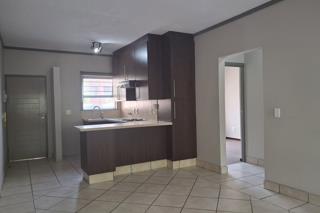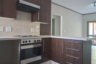 The spacious living area leads out to a well sized patio, ideal for entertainment and relaxation. The apartment comprises two bedrooms, both with ample cupboard space, and one bathroom with a shower.
