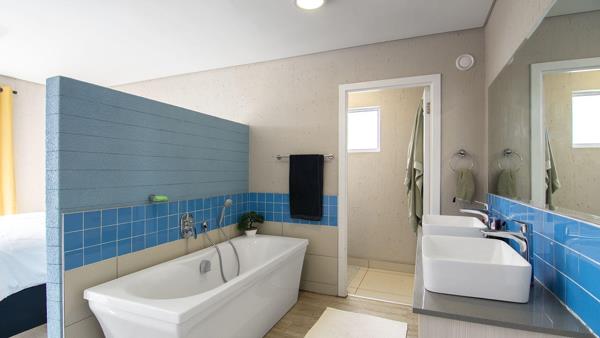 2 Sizeable bedrooms, 2 bathrooms. The main bedroom has a unique en-suite with a large bathtub and a double basin.