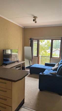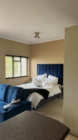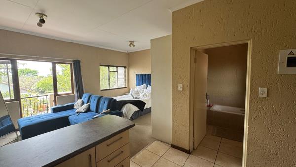 Discover modern living in this inviting studio apartment, perfectly situated within a sought-after complex in Paulshof, Sandton. Designed for convenience and comfort, this open-plan residence seamlessly integrates living and sleeping areas, bathed in natural light from large windows that also provide access to a private balcony. The functional L-shaped kitchen is a highlight, featuring light wood-look cabinetry, dark countertops, a tiled backsplash, and integrated appliances including an oven, hob, and extractor fan, all complemented by easy-to-clean tiled flooring.