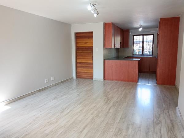 Step into a spacious open-plan lounge and dining area that opens onto a covered patio, leading to a private, well-kept garden perfect for enjoying morning coffee, weekend braais, or simply unwinding in natures calm.