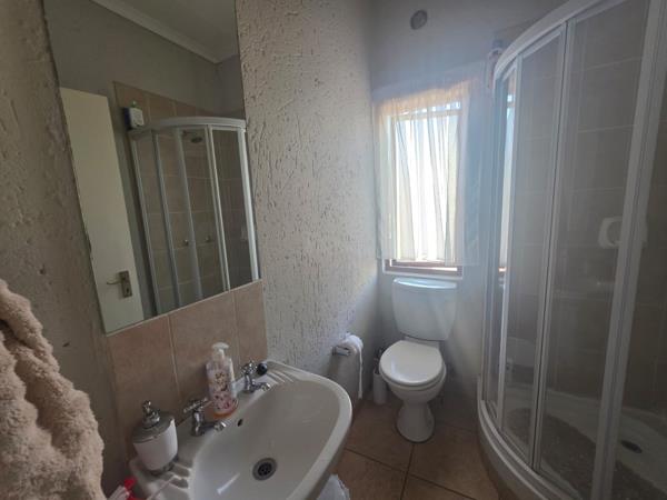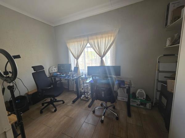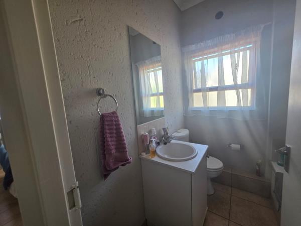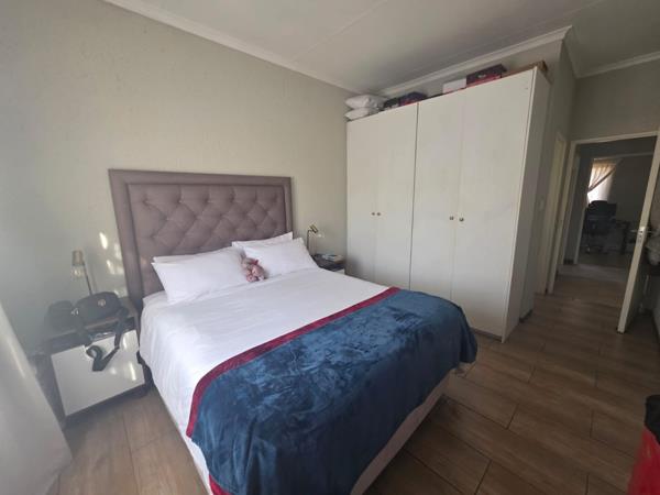 There are 2 bedrooms which are a good size. The master bedroom in en''suite with a bath and toilet. There is a 2nd bathroom which the 2nd bedroom can use as well as visitors. There is a built in space for a study area in the passage which is perfect if you need to work from home and require the 2nd bedroom for a bedroom.