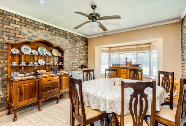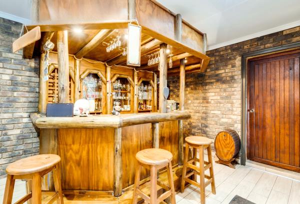The covered Lapa has a built-in braai and drop-down canvas blinds that boasts lovely views of the Leeukop Koppies.