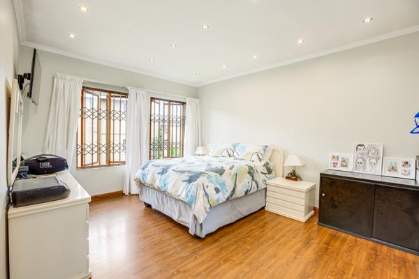 Three generously-sized bedrooms with laminated flooring and built-in cupboards.