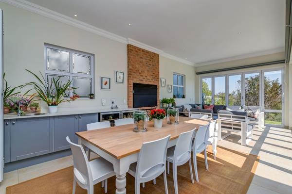 Perfect for entertainers, the property offers two versatile outdoor living areas fitted with roll-down sun blinds, a built-in gas and charcoal braai, bar fridges, and an outdoor storeroomideal for year-round gatherings.