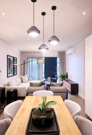 104 on Creek - Fully Furnished 2 Bed Apartment. All units have vinyl flooring, double glazing and air conditioning in the main bedroom and living area. The kitchen is equipped with a gas stove and electric oven, a food waste disposal and Caesar stone counter tops.