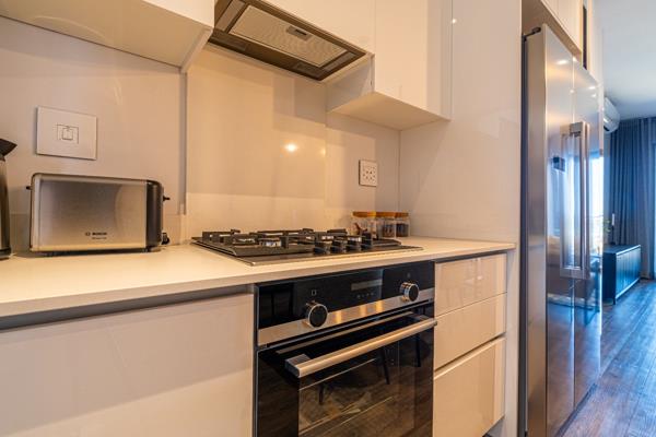 Fully furnished two-bedroom apartment with spectacular views. 104 on Creek has an option for everyone, from busy executives to growing families and retirees. This 2 bed, 2 bathroom show unit is sold fully furnished with premium finishes and tasteful design, offering a convenience to simply move in. This apartment comes with air-conditioning and double-glazed windows. The kitchen has modern fittings, Caesar Stone countertops, siemens appliances, a gas stove and electric oven, and food waste disposal units. The complex offers either undercover parking or basement parking as well as a backup generator and elevators access to each floor.