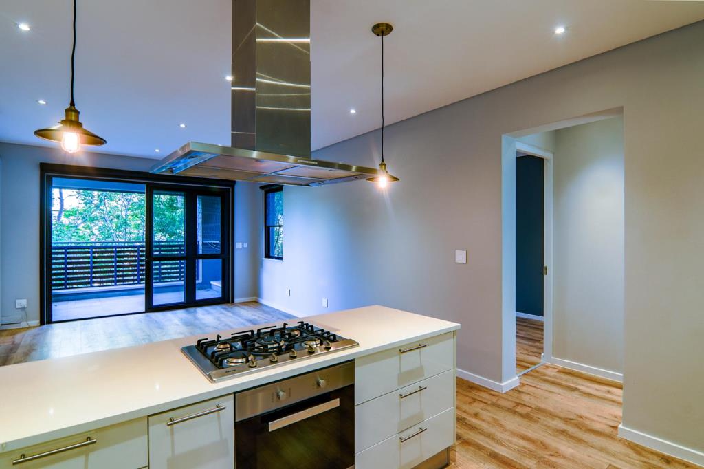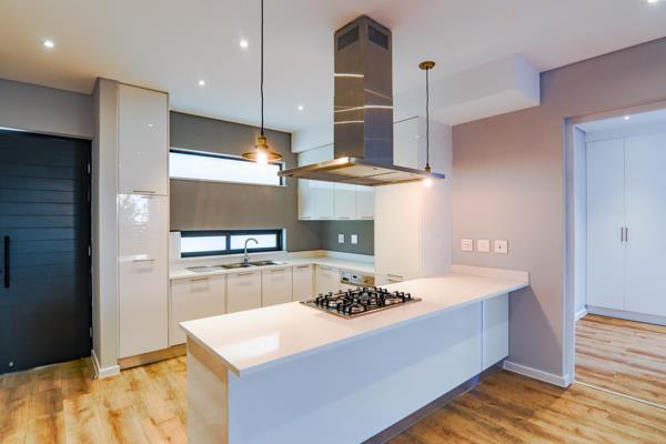 Spacious, modern 2 bed 2 bath apartment nestled on the 1st floor overlooking the estate. Open plan ambience with modern and good quality finishes.An open plan kitchen all white - gloss finished cupboards, equipped with Miele appliances - integrated fridge, freezer, dishwasher, washing machine/dryer, gas stove, electric oven and modern lighting. Kitchen has quality countertops with space for eat in kitchen seating. Kitchen waste disposal system installed.