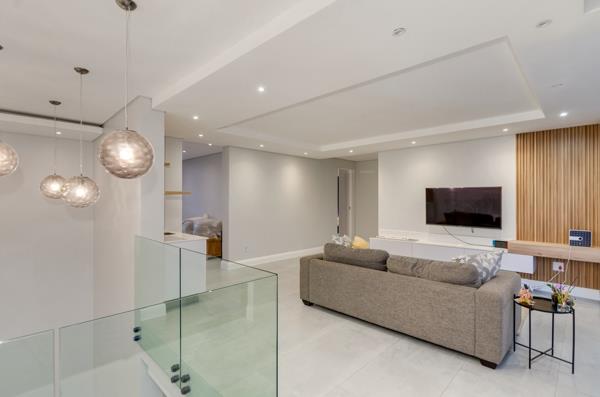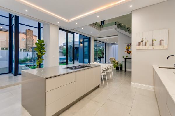 Discover modern luxury in this stunning 4-bedroom, 4-bathroom home that embodies architectural brilliance and high-end living in Steyn City. Bathed in natural light, this home combines sleek design with effortless functionality. The ground floor features an en suite guest bedroom, a private study, and an expansive open-plan living space that flows into a state-of-the-art kitchen, complete with Caesarstone countertops, a gas hob, built-in ovens, a fridge, and a separate scullery for convenience.
