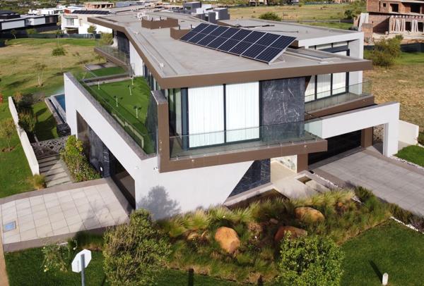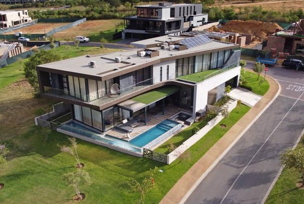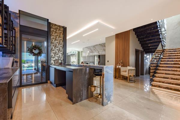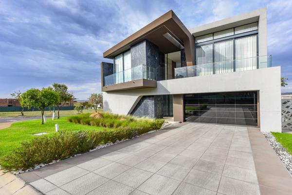 High-Tech Luxury Home in Steyn City. Step into a world where sophistication meets cutting-edge technology in this remarkable 4-bedroom, all en-suite residence at Steyn City Estate. Beyond the sleek double-volume entrance, a smart keypad entry welcomes you into a realm of modern elegance, where every element of the home is designed to elevate convenience, security, and style.