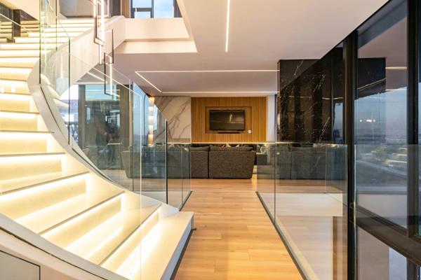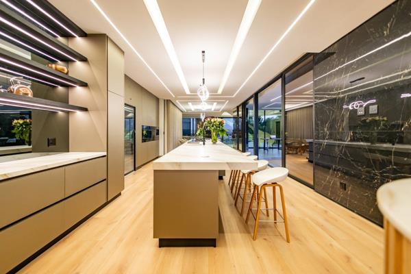 As you enter, a breathtaking spiral staircase greets you, setting the tone for the sophisticated design throughout the house. The expansive open-plan living areas are flooded with natural light, offering panoramic views from every room. The large, state-of-the-art kitchen is perfect for culinary enthusiasts, featuring high-end appliances and ample counter space, Cold room, while a separate bar area ensures effortless entertaining.