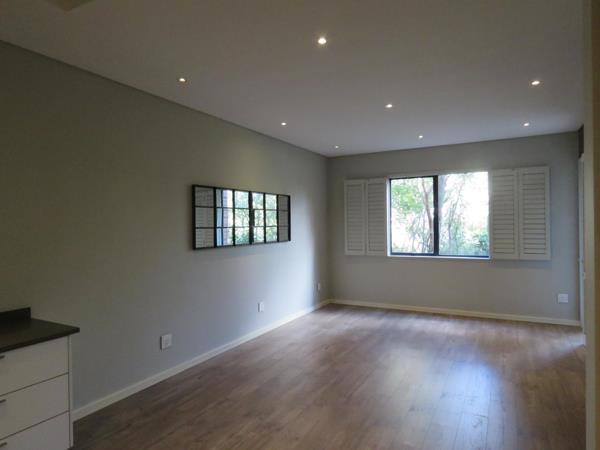 This modern and spacious unit has become available for the right buyer. Beautiful open plan flow with ample windows to allow for light. Fitted with American shutters which lends it a look of sophistication. Open plan, all white kitchen cupboards with gloss finish and fitted with all Miele appliances. Spacious lounge and dining room with access to the balcony. The bedroom and en-suite bathroom with modern finishes leads off the dining room. The bedroom has direct access to the balcony which is very private. Electricity and gas are prepaid. A diesel levy is payable during load-shedding. Levies are payable for the estate and Body Corporate which is very reasonable.