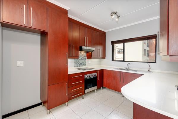 Upmarket, spacious apartment boasting an open plan living/dining area, leading to a large private covered balcony with a built-in braai. It offers absolutely gorgeous North facing sunset views. It has a super modern kitchen with quartz counter tops, and highline finishes. 2 spacious bedrooms, with 1 full bathroom which has a freestanding bath tub, and a separate shower cubicle. There are 2 dedicated covered parking bays for the unit.