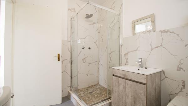 Upstairs, a well-positioned bathroom serves the second floor, while another balcony offers a built-in braai (barbecue) ideal for outdoor cooking and entertaining. The second bedroom is generously sized, boasting its own private balcony for a peaceful retreat. Each bedroom is equipped with built-in cupboards, providing ample storage space.