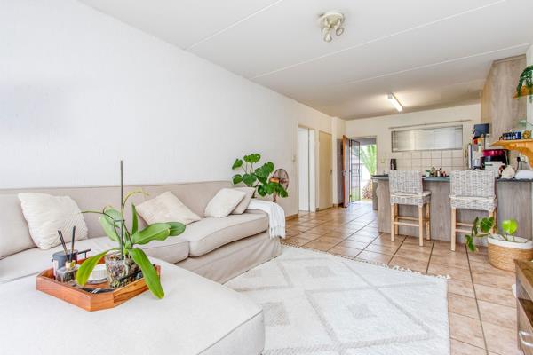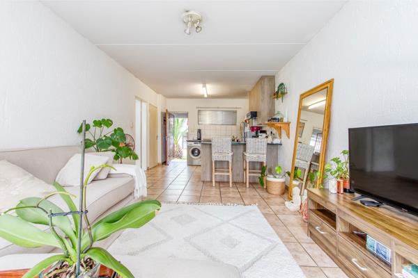 Large, bright bedroom, full bathroom, spacious kitchen with lots of cupboards, large sunny lounge opening onto a covered patio, manicured common garden.