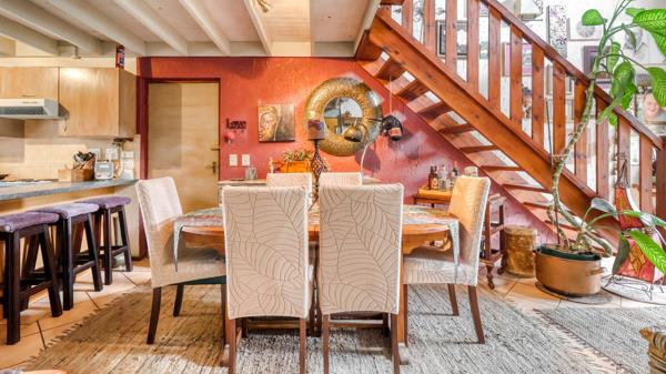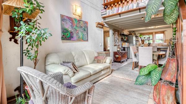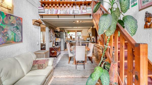 Apartment Features: 2 Sunny, generously sized bedrooms with built-in wardrobes (main bedroom opens onto a cozy covered patio), Full bathroom with both a bath and shower, Open-plan kitchen with electric stove, oven, and space for one under-counter appliance, Double-volume dining and lounge area with loads of natural light, flowing out to a sunny covered patio, Spacious upstairs loft ideal as a TV lounge, work-from-home office, or even a 3rd bedroom opening onto a large, private balcony with lush plants, perfect for entertaining or relaxing