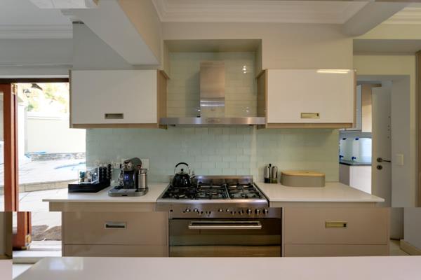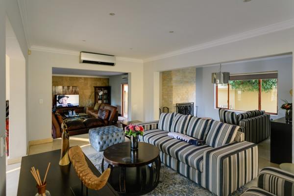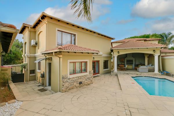 This cluster home, located within a prestigious and highly sought-after estate and offers a three spacious reception areas: a sizable TV lounge, a formal lounge, and a dining room that seamlessly opens onto an expansive patio. This outdoor area provides a picturesque view of the braai area, landscaped garden, and swimming pool.