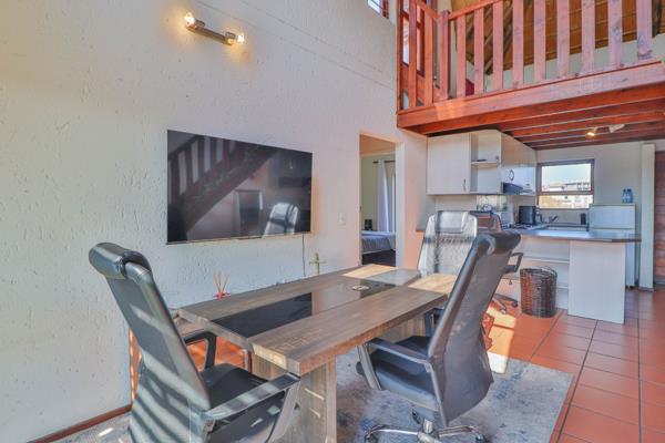 The dining area leads through vast sliding doors onto the patio - with wonderful open views! This is a bright space with large windows letting in additional natural light, as the towering wall soars to the loft.