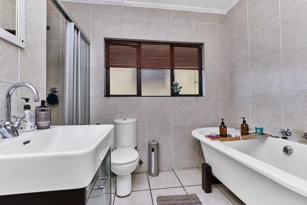 2 modern bathrooms both have a shower and bath.