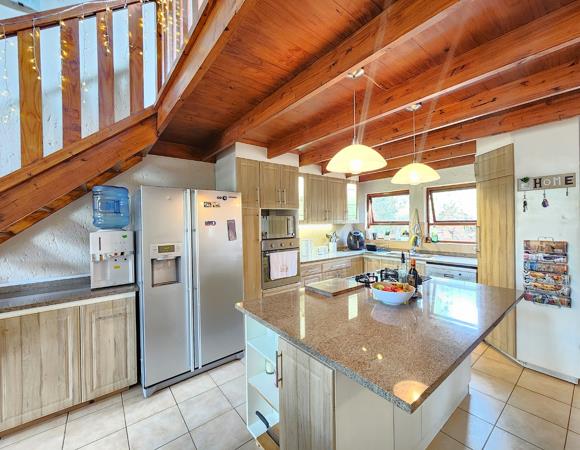 This charming home features two generously sized bedrooms with built-in cupboards and plush carpets. The master bedroom includes a ceiling fan and an en-suite bathroom for added convenience. The second bathroom is equally well-appointed, ensuring a comfortable living experience.