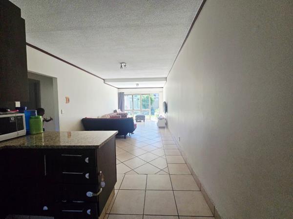 The north-facing main bedroom and lounge are bright and inviting, filling the space with natural light and creating a cheerful, relaxing atmosphere throughout the day. The open-plan, fully tiled living and dining area flows onto a covered patio and private garden, offering a safe, enclosed space for children to play or for you to enjoy peaceful outdoor moments.